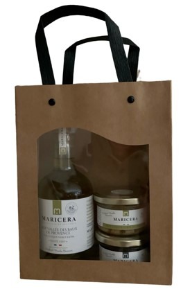 • Sac Cadeau 1 Bouteille Fruité Vert AOP Vallée des Baux Avec 1 Pâte d’Olive Verte & 1Pâte d’Olive Noire